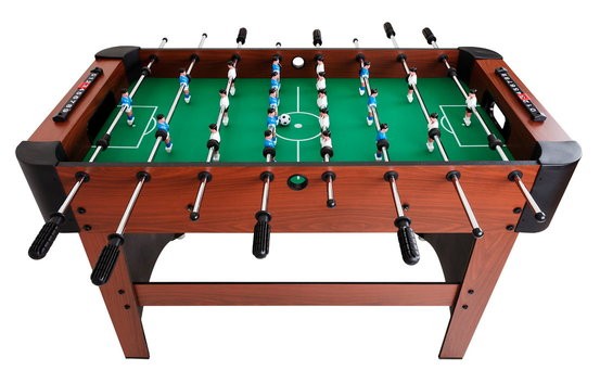Корпус настольного футбола выполнен из высококачественного дерева и ламинированного МДФ. Стол имеет удобные отверстия на задней части ворот для вытаскивания мяча, после забитого гола.